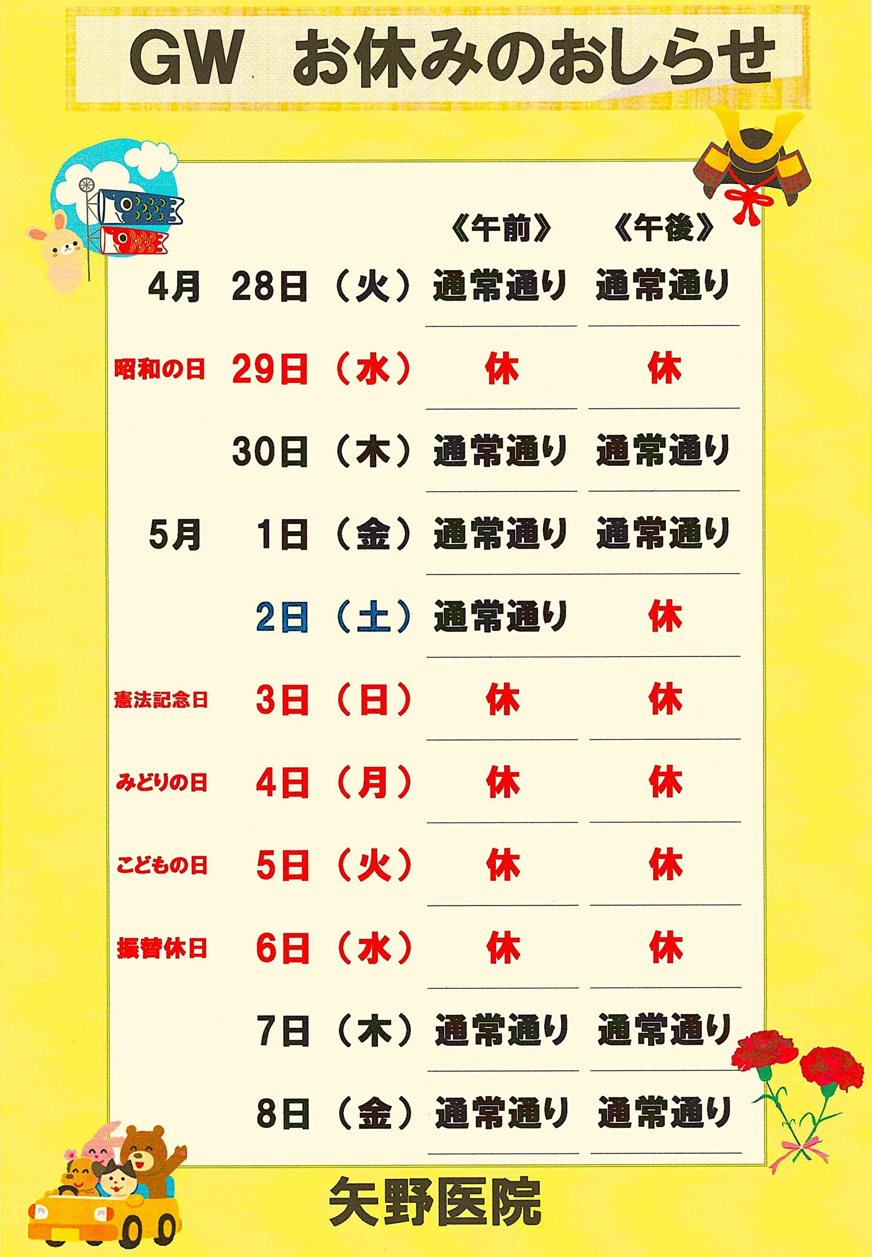 令和8年度GW診療日時のお知らせ
